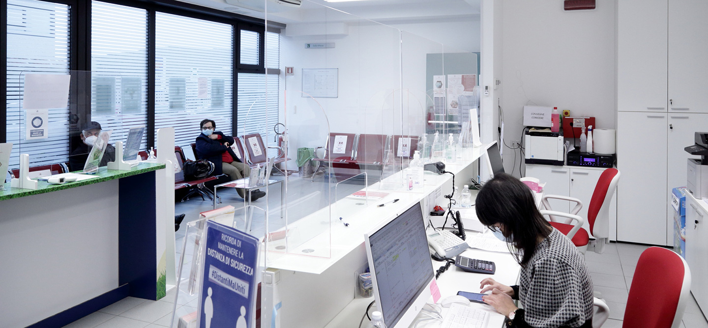 L’area Reception è organizzata in modo da ottemperare alle norme previste in materia di privacy (GDPR 2016/679), a tale scopo è chiaramente segnalata e delimitata la zona di riservatezza in prossimità dei banchi del front-office al fine di assicurare un ordinato e riservato andamento del flusso di pazienti/utenti.